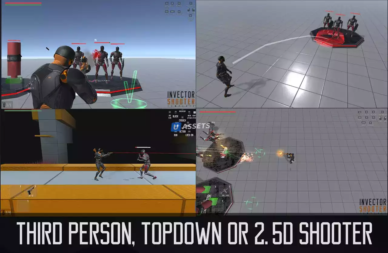 ✔️ Включены примеры: различные стили геймплея, такие как TopDown, 2.5D, Mobile, Point&Click