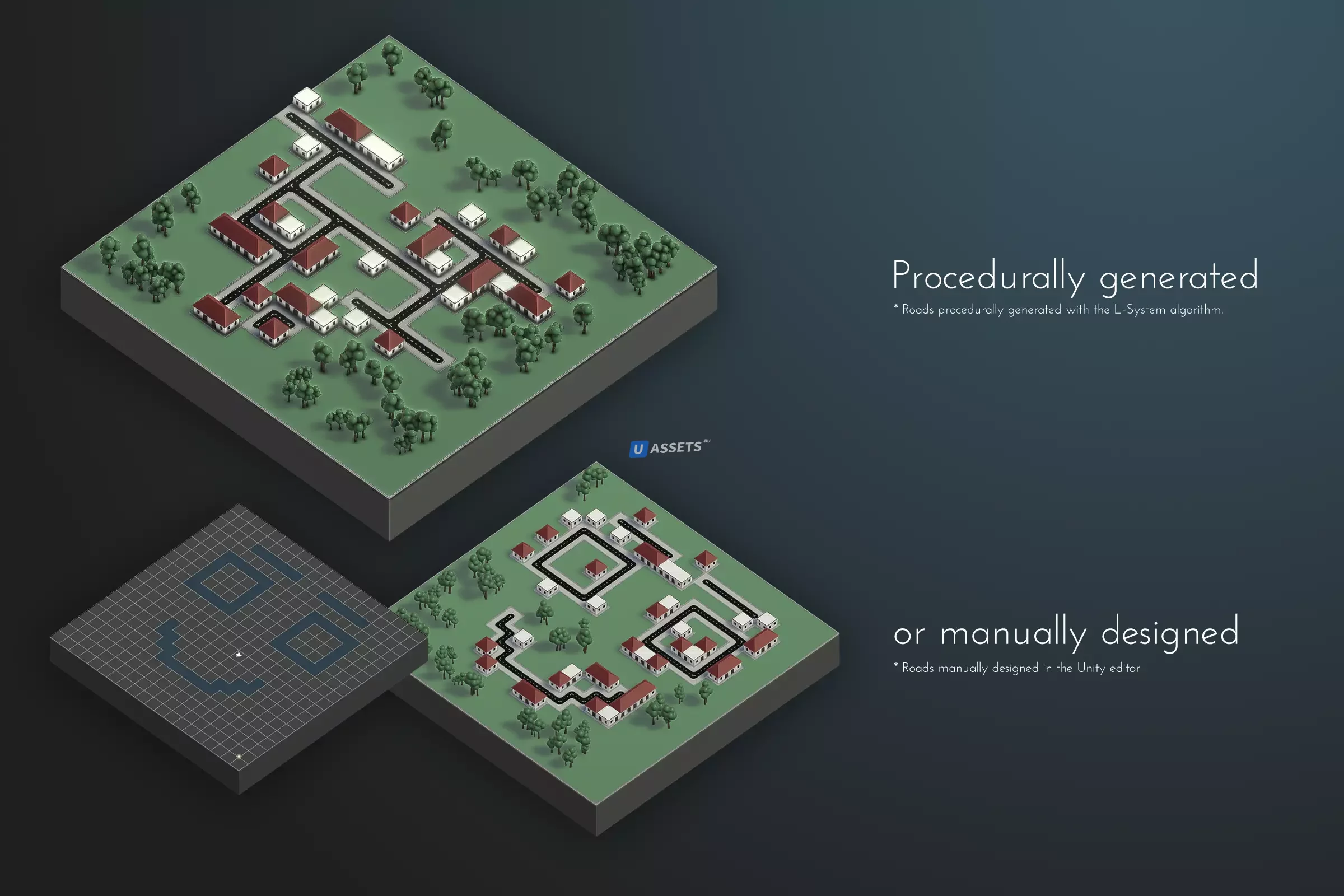 Создавайте красивые карты листов процедурно или вручную. Создавайте уникальные карты и создавайте объекты с помощью включенных алгоритмов и модификаторов. Все без кодирования.