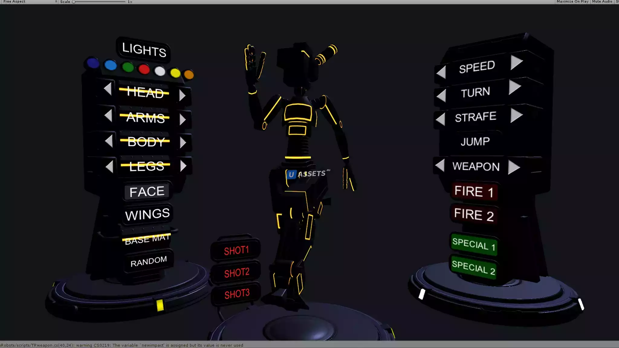 Этот пакет содержит 6 низкополигональных анимированных роботов и еще одного со всеми частями тела, которые нужно настроить.