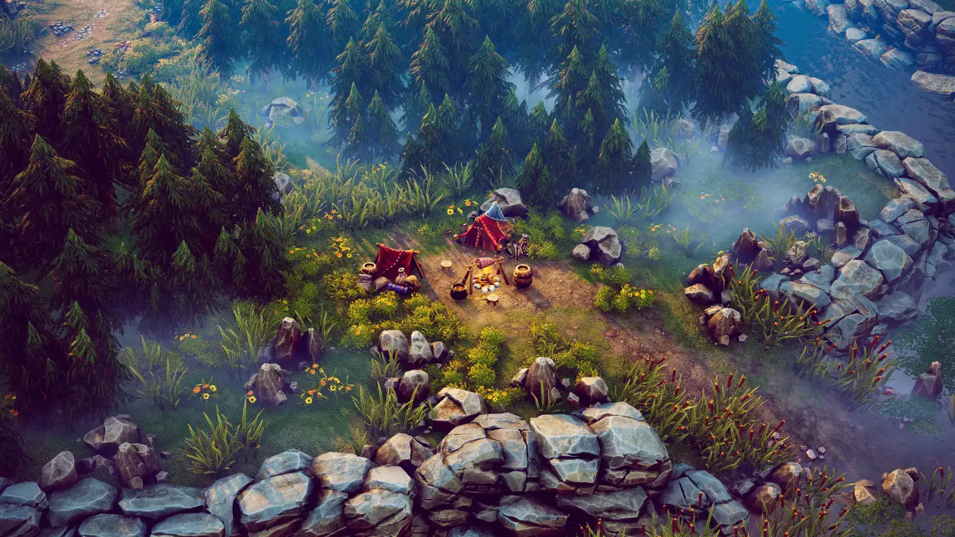 - Палатки, фургон, костры и множество походного реквизита