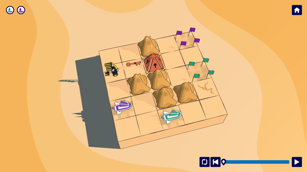 Trails — это увлекательная игра-головоломка, в которой игроки прокладывают маршруты для песчаных кораблей на сетчатом поле. Главная цель игры — доставить определённый груз в указанные аванпосты, расположенные на карте. Игрок чертит траекторию для каждого судна, контролируя их движение, чтобы избежать столкновений или повторного захода на одну клетку. Пути должны быть непрерывными и вести к цели, так как тупики или движение назад приводят к перезапуску уровня.