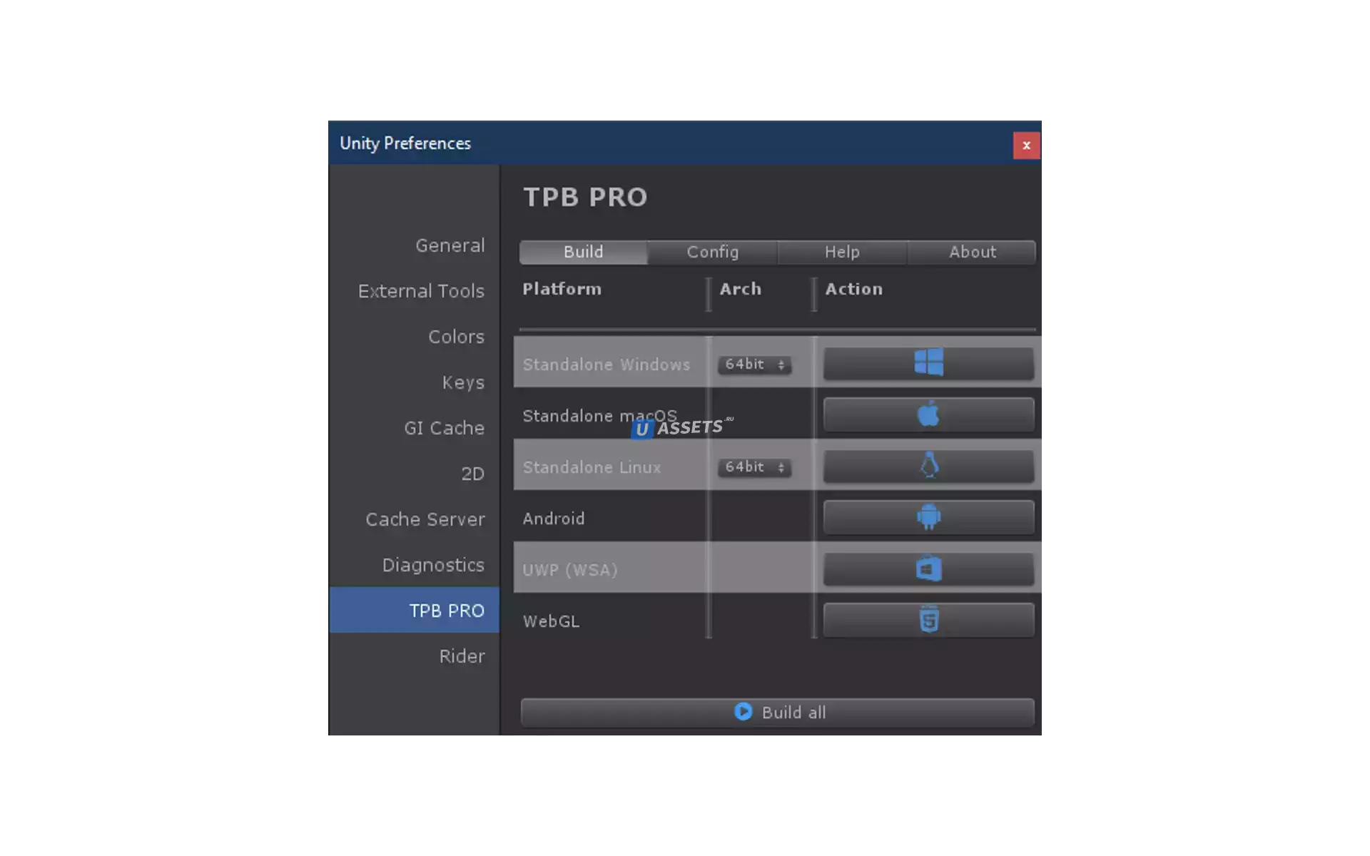 • Поддержка различных виртуальных машин, таких как Unity Collab, git, svn, Mercurial и PlasticSCM
