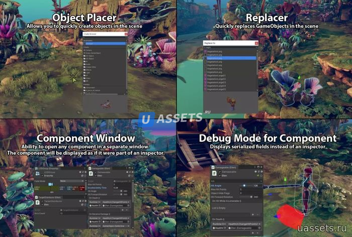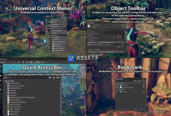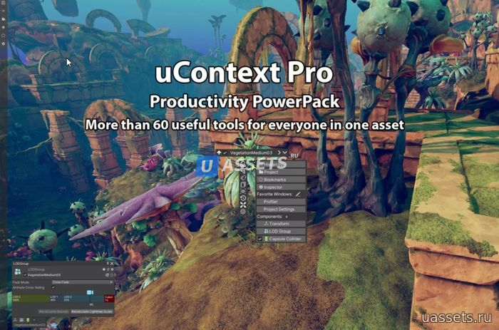 uContext Pro - это пакет повышения производительности, который выводит ваш рабочий процесс в редакторе Unity на новый уровень, упрощает работу с контентом, добавляет новые функции в редактор, исправляет и улучшает встроенные функции редактора.