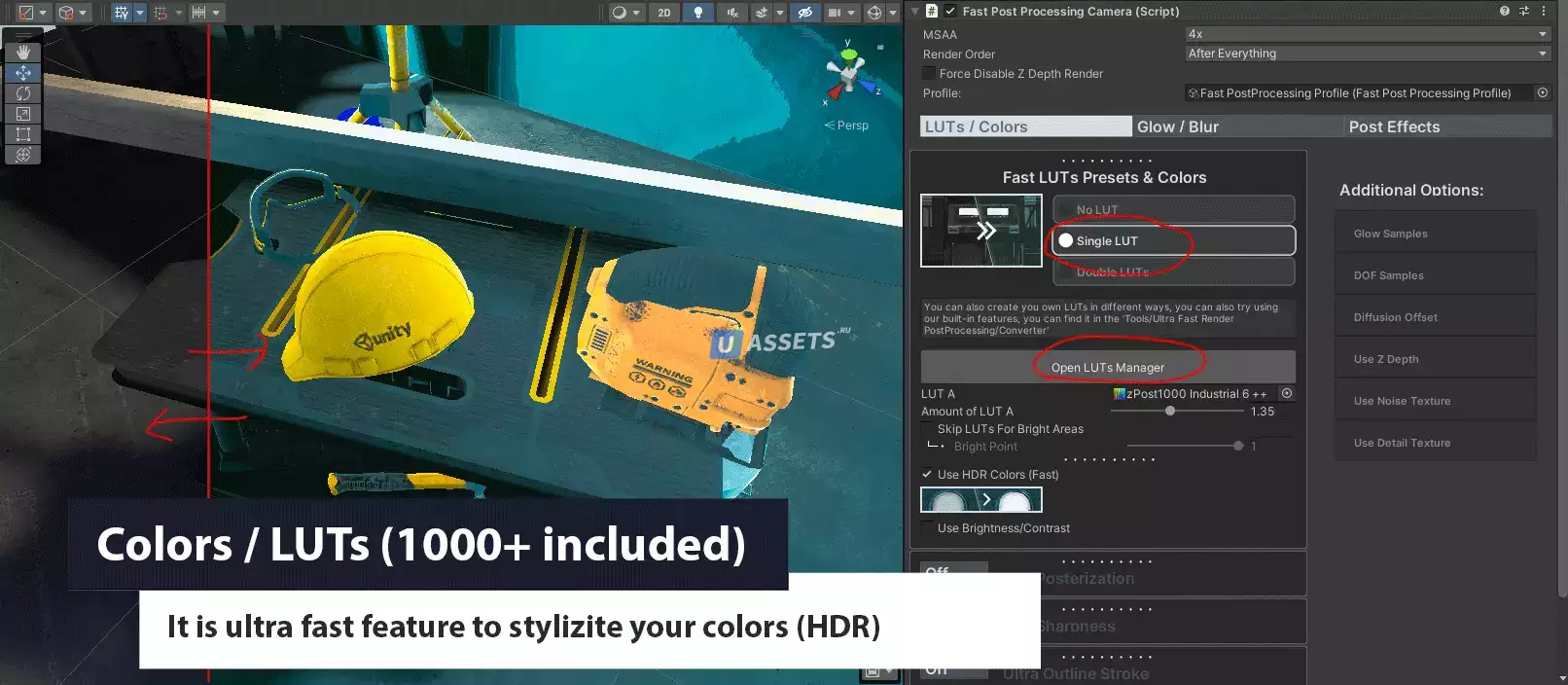 1000+ (2D / 1024) LUTS и специальный менеджер LUTs - основная функция, позволяющая быстро изменять стиль рендеринга цветов. Вы можете выбрать один из 1000 включенных LUT, а также создать свой собственный, используя