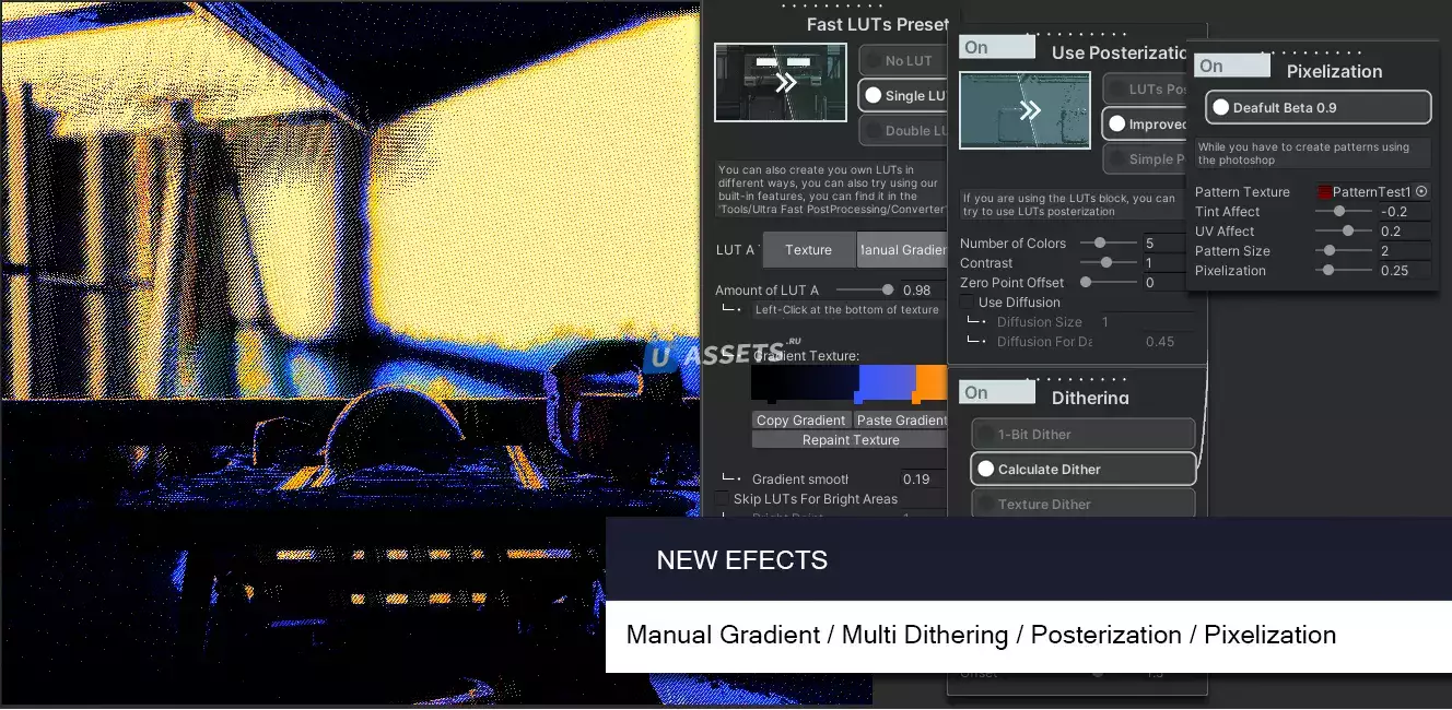 Это специальный очень быстрый шейдер постобработки, есть много авторских алгоритмов, это не огромные скрипты, ориентированные на быстрый рендеринг, и в будущем список будет расширен.