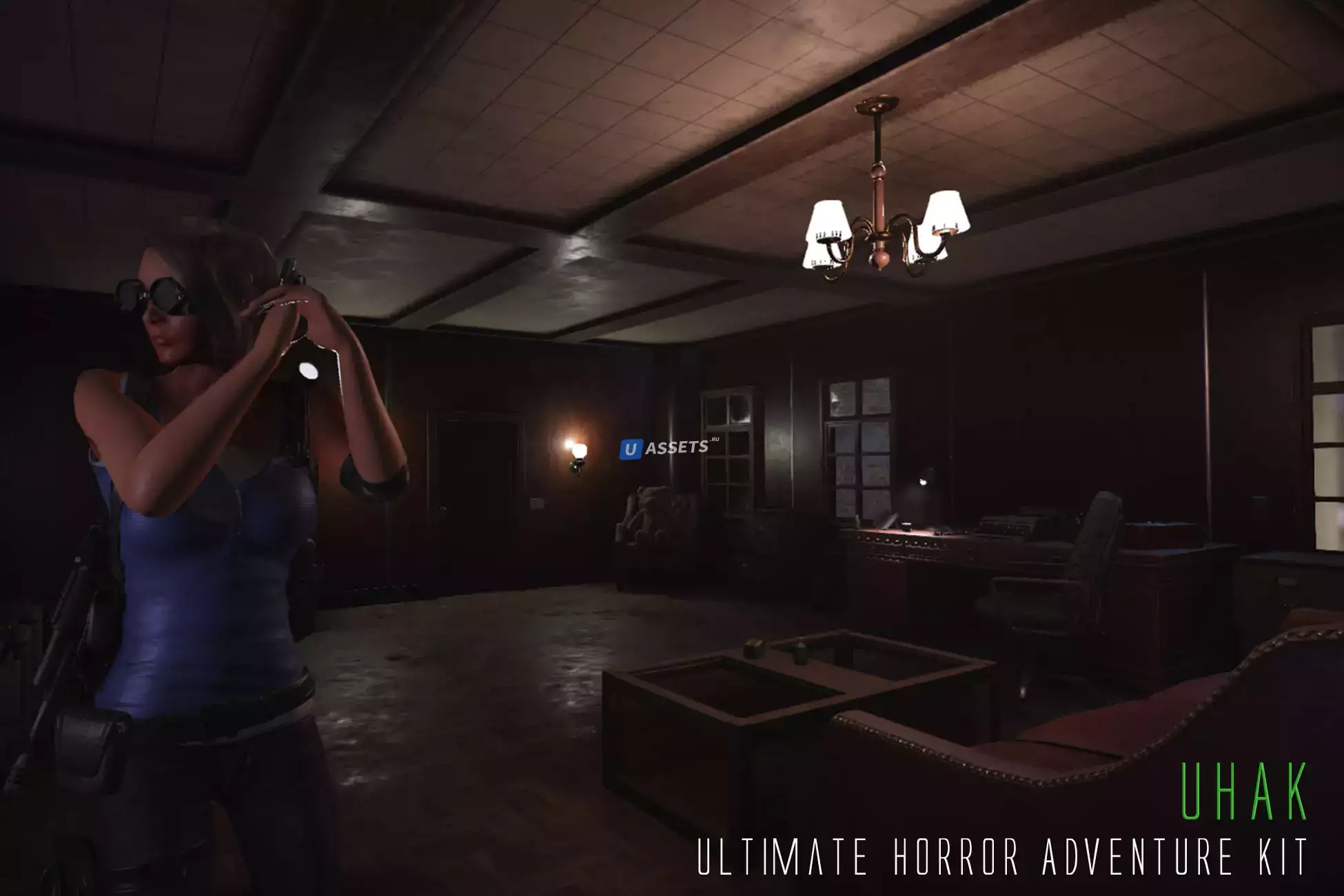 Этот ресурс предназначен для тех, кто хочет создать игру ужасов / приключений, используя камеру от 1-го \ 3-го лица или статические камеры в стиле RE. Сцена собрана в стиле серии RE.