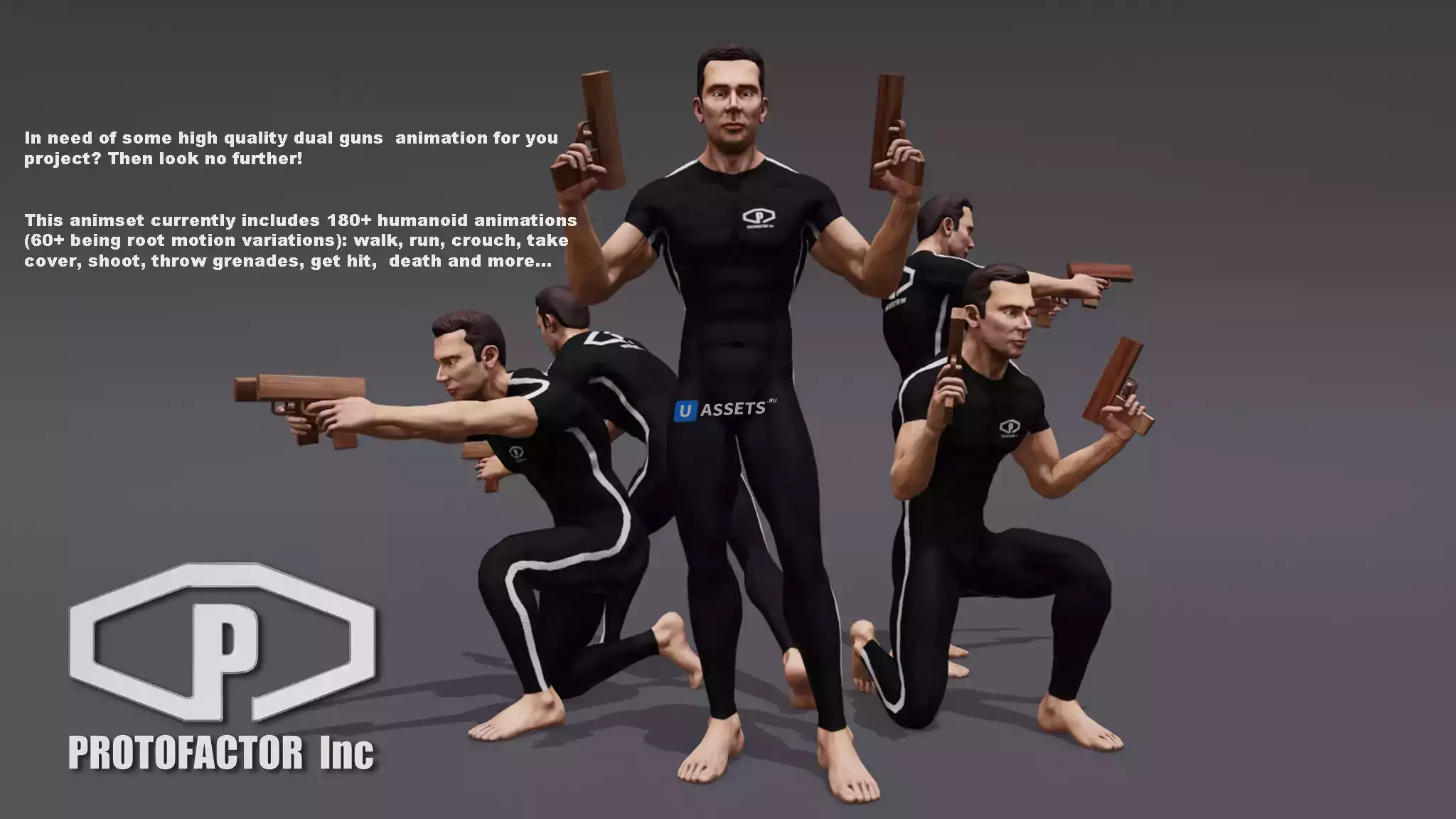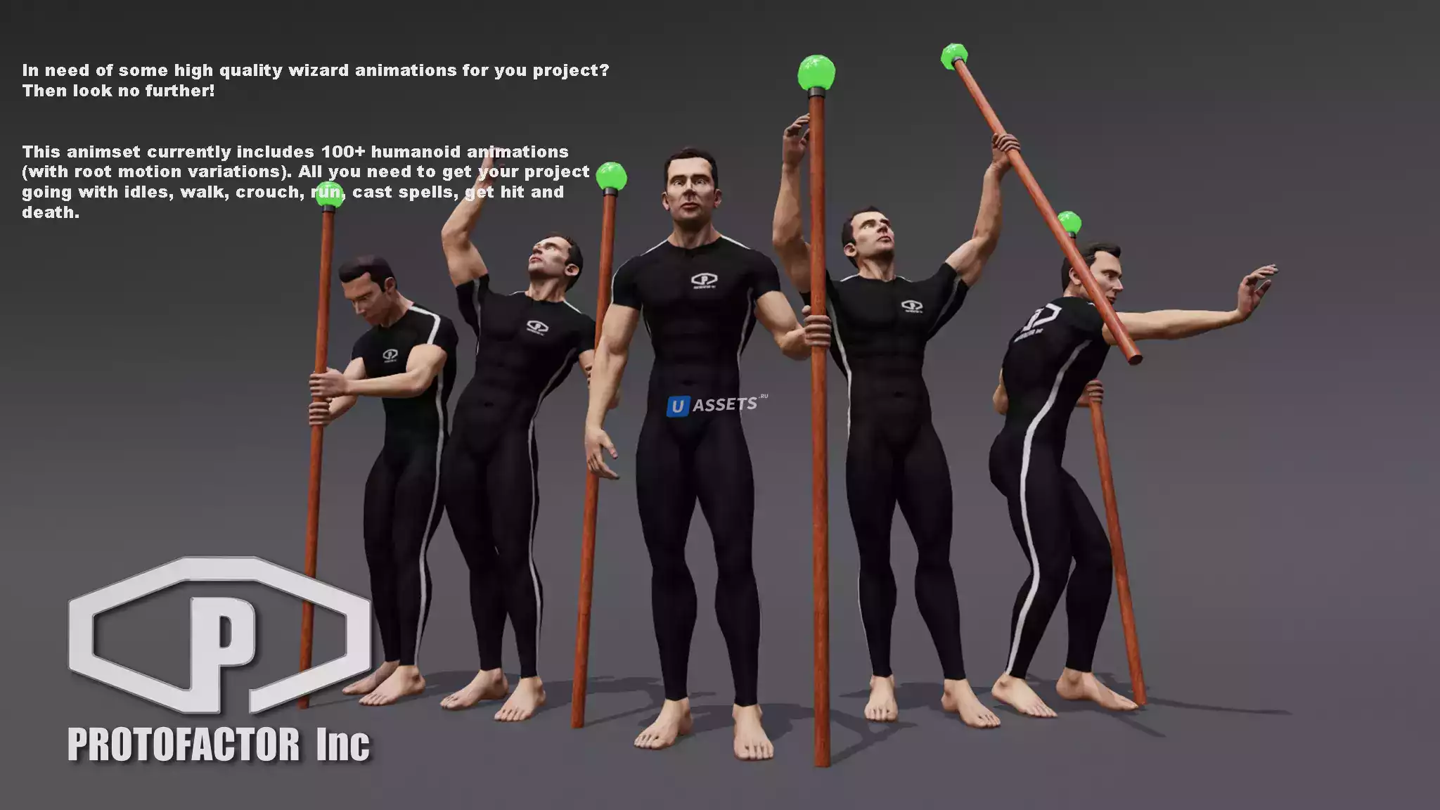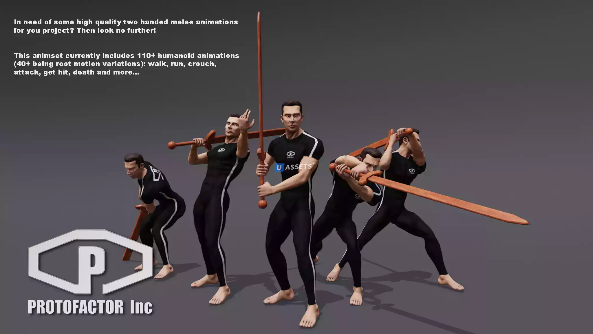 Этот пакет представляет собой полную библиотеку анимации захвата человеческого движения, предназначенную для двуногих персонажей, настроенных на "Mecanim Humanoid".