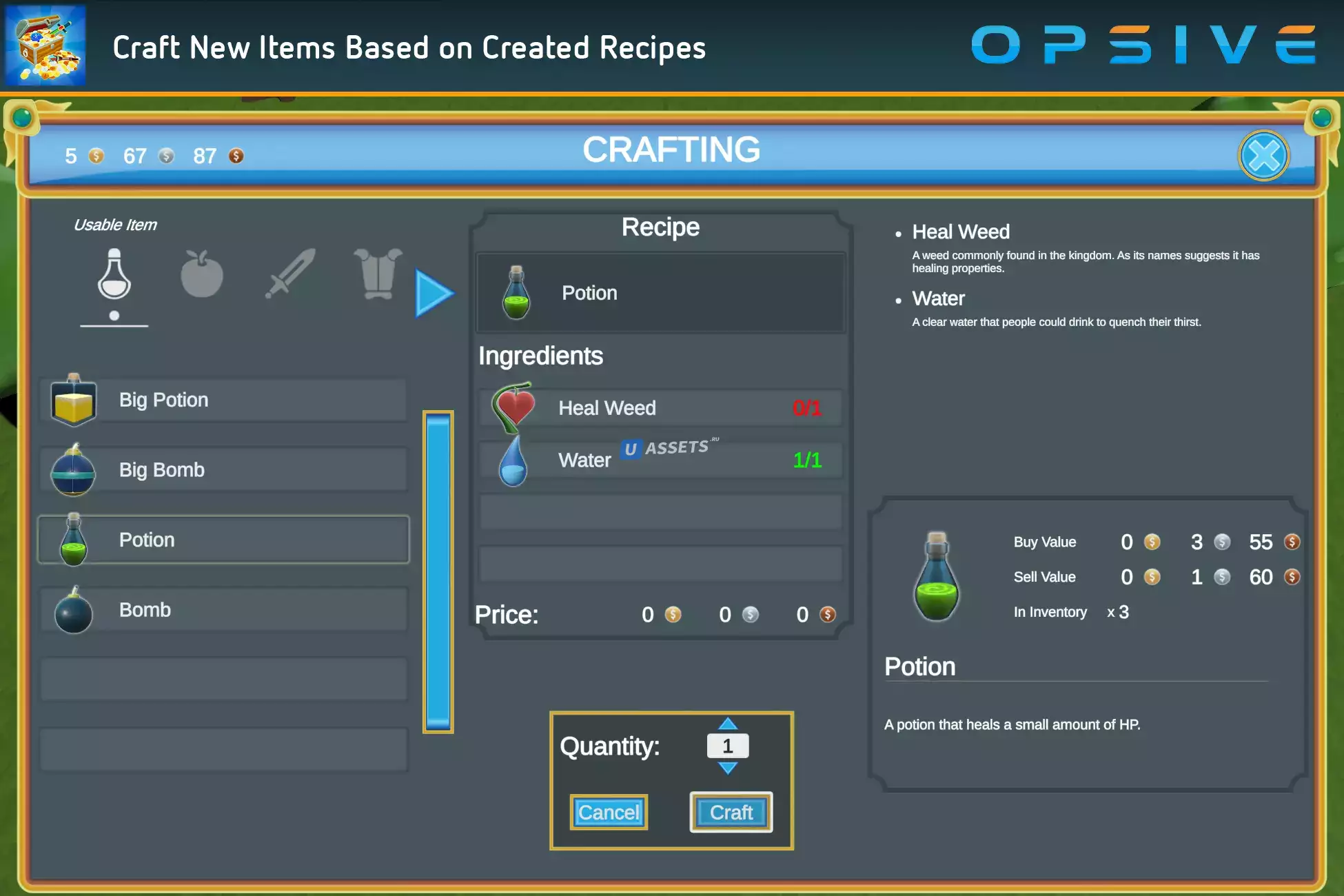 Система Ultimate Inventory System содержит интуитивно понятный редактор, который позволяет быстро создавать объекты инвентаризации. Отображение пользовательского интерфейса можно настроить так, чтобы он отображал инвентарь в соответствии со стилем вашей игры. Также включены расширенные функции инвентаря, такие как крафт, апгрейды и система магазинов.