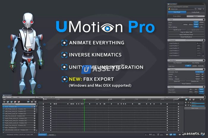 Мощный редактор анимации для анимации любого типа 3D-модели прямо внутри Unity.