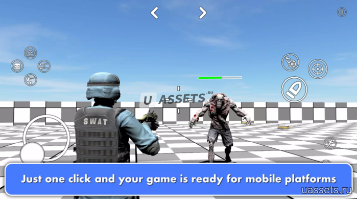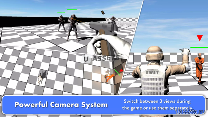 Эта система предназначена для создания стрелялок любой сложности. С его помощью вы можете легко создавать игры от первого лица, от третьего лица и Сверху вниз для всех основных платформ: ПК, мобильных устройств, Интернета.