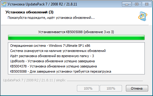 Для установки UpdatePack7R2 можно использовать ключи, которые не потребуют перезагрузки или замене драйверов. Примеры использования: /reboot для автоматической перезагрузки, /s