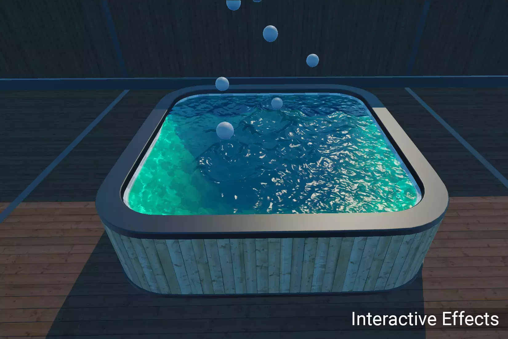 Используйте любой вид рендера (частицы, рендер траектории, сетку и т.д.) для динамического воздействия на поверхность воды. Используя предоставленный шейдер или свой собственный, вы можете влиять на нормали, пену и смещение поверхности воды.