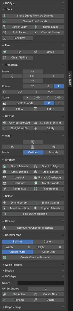 UV Toolkit (v2.1.2) для Blender представляет собой обновленную версию популярного аддона, предназначенного для упрощения и улучшения работы с UV-развертками. В этой версии добавлены и улучшены несколько ключевых функций, направленных на повышение эффективности и точности процесса текстурирования.