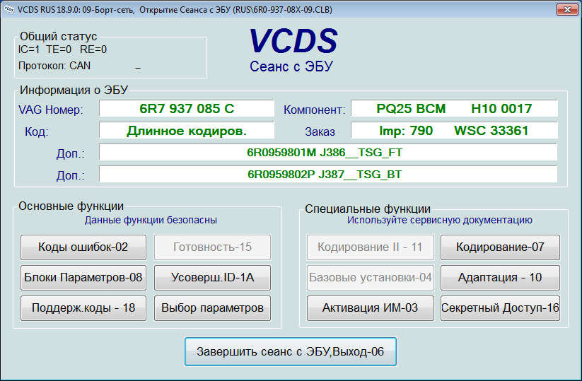 Основные возможности VCDS: