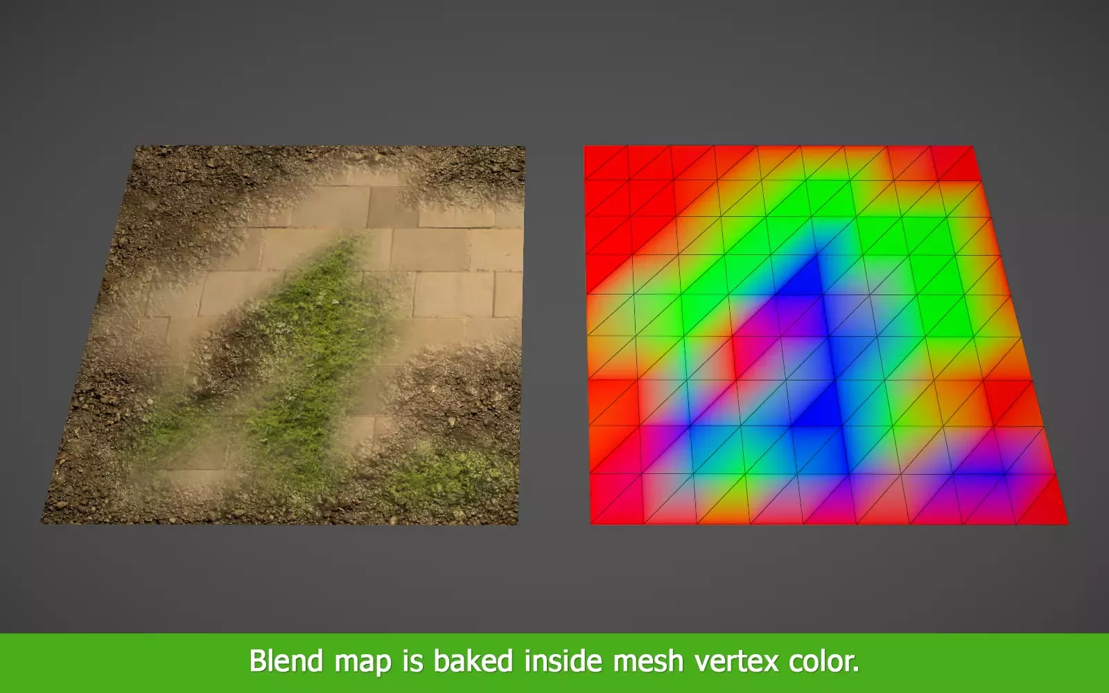 Runtime API добавляет методы расширения к классу Unity Mesh, которые возвращают обработанные текстуры для каждой вершины в виде массива color[].