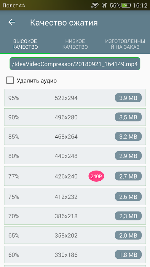 Приложение оптимизировано для быстрой работы и позволяет легко управлять размером медиафайлов для их удобного хранения или отправки.