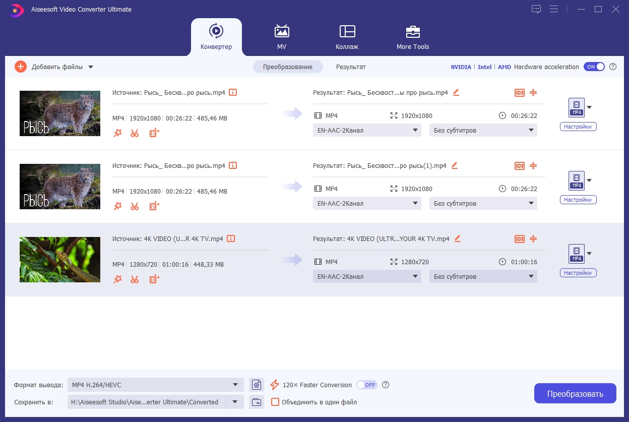 Основные возможности Aiseesoft Video Converter Ultimate: