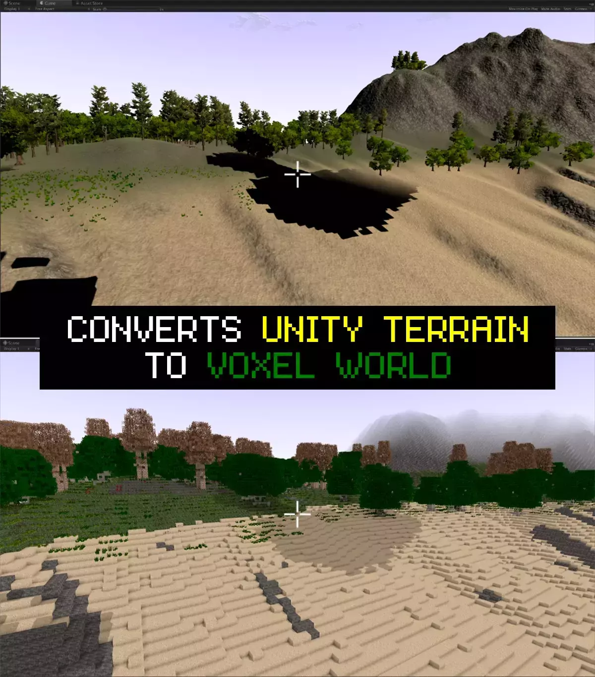 - Определите любое количество миров, биомов, моделей и вокселей в редакторе Unity и моделируйте свой мир в интерактивном режиме во время выполнения, используя тот же интерфейс (все, что вы измените, будет сохранено).