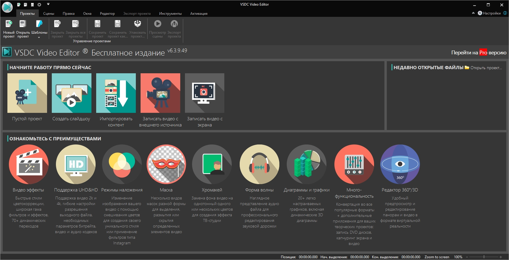 VSDC Video Editor – Бесплатный видео редактор, с серьезными возможностями рассчитанный не только на профессионалов видеомонтажа, но и неопытных пользователей.