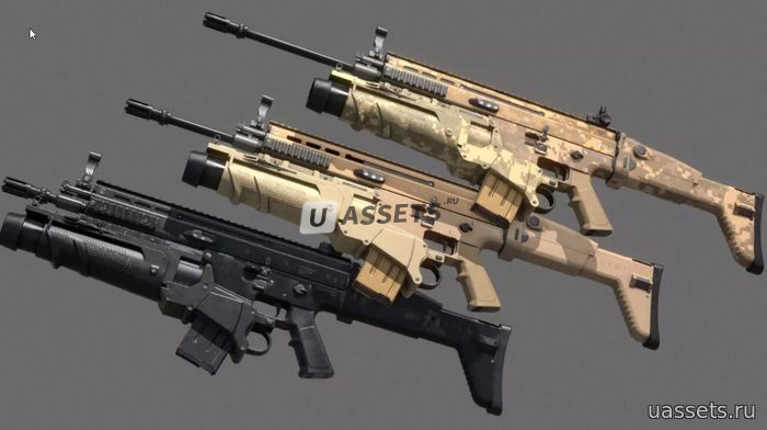 - 3 текстурных скина: Пустынный, Черный, Набор камуфляжа