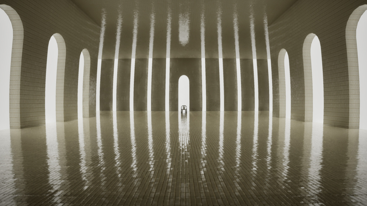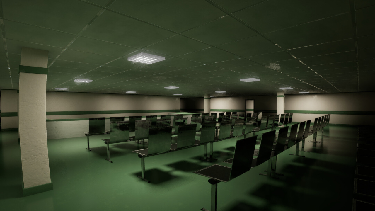 Подобный подход создает у игрока ощущение глубокого уединения. Сеттинг — ключевая составляющая геймплея Walking In, вдохновленная несколькими яркими визуальными стилями. Вам предстоит исследовать зоны, напоминающие Backrooms Level 0, бродить по больничным коридорам и осматривать суровые бетонные конструкции. Кроме того, игра включает эстетику poolcore, предлагая для исследования безмолвные залы, наполненные водой.