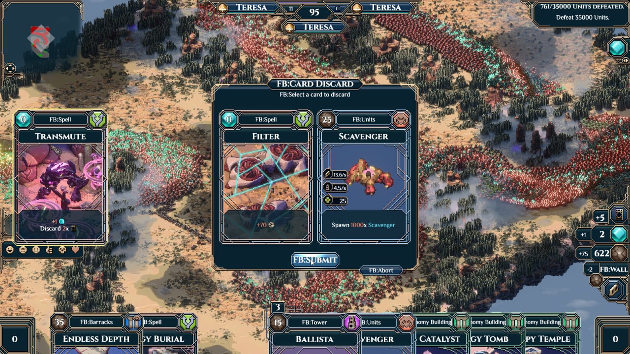 WARCANA объединяет магию и стратегию в напряженной битве на выживание. Вы берете на себя роль могущественного волшебника, отражающего бесконечные орды чудовищ. Ключевая особенность игры — система построения колод. Ваша цель — не просто выстоять под атаками, но и превзойти других магов. Вы собираете свою колоду, укрепляете цитадель и призываете армии. Это постоянная гонка со временем и соперниками. Каждая карта в колоде представляет собой целое древо технологий, открывающее доступ к постройкам, боевым единицам или мощным заклинаниям.