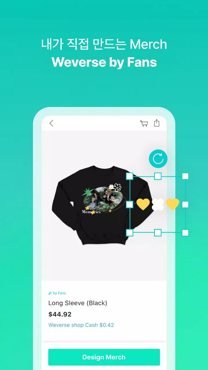 Одна из интересных функций — возможность создавать собственные товары, используя официальные изображения, логотипы и тексты артистов. Кроме того, покупатели в WEVERSE SHOP 1.18.5 получают шанс на участие в специальных мероприятиях, таких как офлайн-фансайны, видеозвонки и презентации.