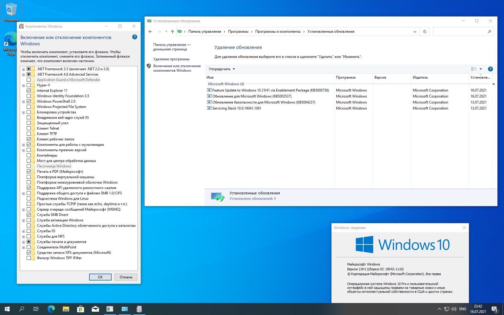 Образ Windows 10 с интегрированными обновлениями по 15.07.2021 Интегрированы обновления исключительно средствами DISM. Компьютер для системы: ·64-разрядный (x64) процессор с частотой 1 гигагерц (ГГц) или быстрее или система на кристалле SoC ·2 ГБ оперативной памяти (ОЗУ) ·32 ГБ пространства на жестком диске ·Графическое устройство DirectX 9 или более поздней версии с драйвером WDDM 1.0 Разрешение экрана 800x600 и выше Windows 10 21H1 (Build 19043.1110) (60in2) x86/x64 by Sergei Strelec торрент, изменения: Состав редакций: 1.Windows 10 Home 2.Windows 10 Home Single Language 3.Windows 10 Pro 4.Windows 10 Pro VL 5.Windows 10 Enterprise 6.Windows 10 Education 7.Windows 10 Pro Education 8.Windows 10 Pro for Workstations 9.Windows 10 Enterprise for Virtual Desktops 10.Windows 10 IoT Enterprise 11.Windows 10 Home (Del Apps) 12.Windows 10 Home Single Language (Del Apps) 13.Windows 10 Pro (Del Apps) 14.Windows 10 Pro VL (Del Apps) 15.Windows 10 Enterprise (Del Apps) 16.Windows 10 Education (Del Apps) 17.Windows 10 Pro Education (Del Apps) 18.Windows 10 Pro for Workstations (Del Apps) 19.Windows 10 Enterprise for Virtual Desktops (Del Apps) 20.Windows 10 IoT Enterprise (Del Apps) 21.Windows 10 Home (Del Store) 22.Windows 10 Home Single Language (Del Store) 23.Windows 10 Pro (Del Store) 24.Windows 10 Pro VL (Del Store) 25.Windows 10 Enterprise (Del Store) 26.Windows 10 Education (Del Store) 27.Windows 10 Pro Education (Del Store) 28.Windows 10 Pro for Workstations (Del Store) 29.Windows 10 Enterprise for Virtual Desktops (Del Store) 30.Windows 10 IoT Enterprise (Del Store) Произведённые изменения: (Del Apps)Скриншоты Windows 10 21H1 (Build 19043.1110) (60in2) x86/x64 by Sergei Strelec торрент: