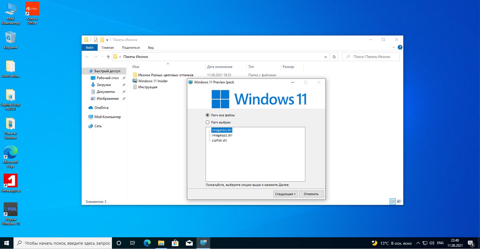 - Беседующая автоматическая замена системы Windows с иконками из пакета