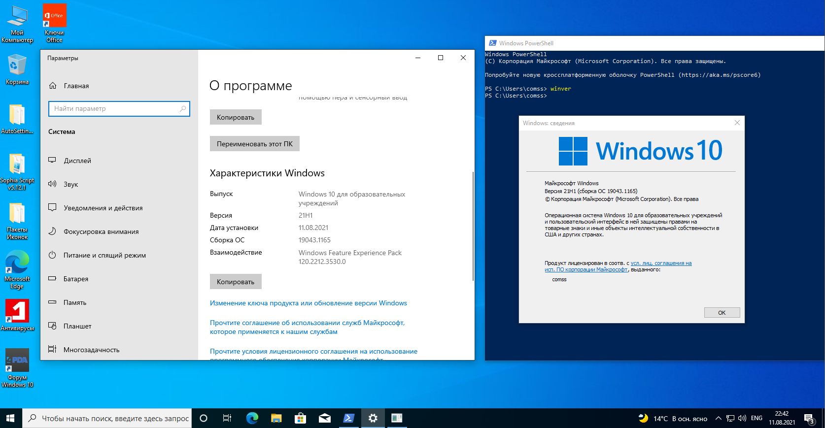 Сборка: Windows 10 Корпоративная, Windows 10 Pro для общеучебных учреждений, Windows 10 Pro для рабочих станций, Windows 10 домашняя с интегрированными устаревшими обновлениями.