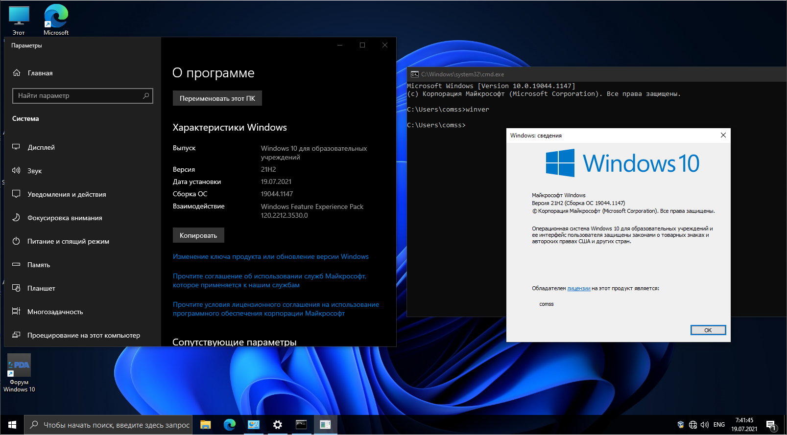 Windows 10 21H2 Build 19044.1147 x64 (19.07.2021) by ArtZak1