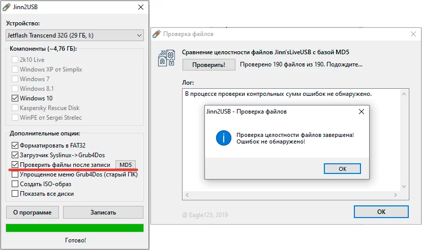 - Запись на флешку с автоматической проверкой контрольных сумм