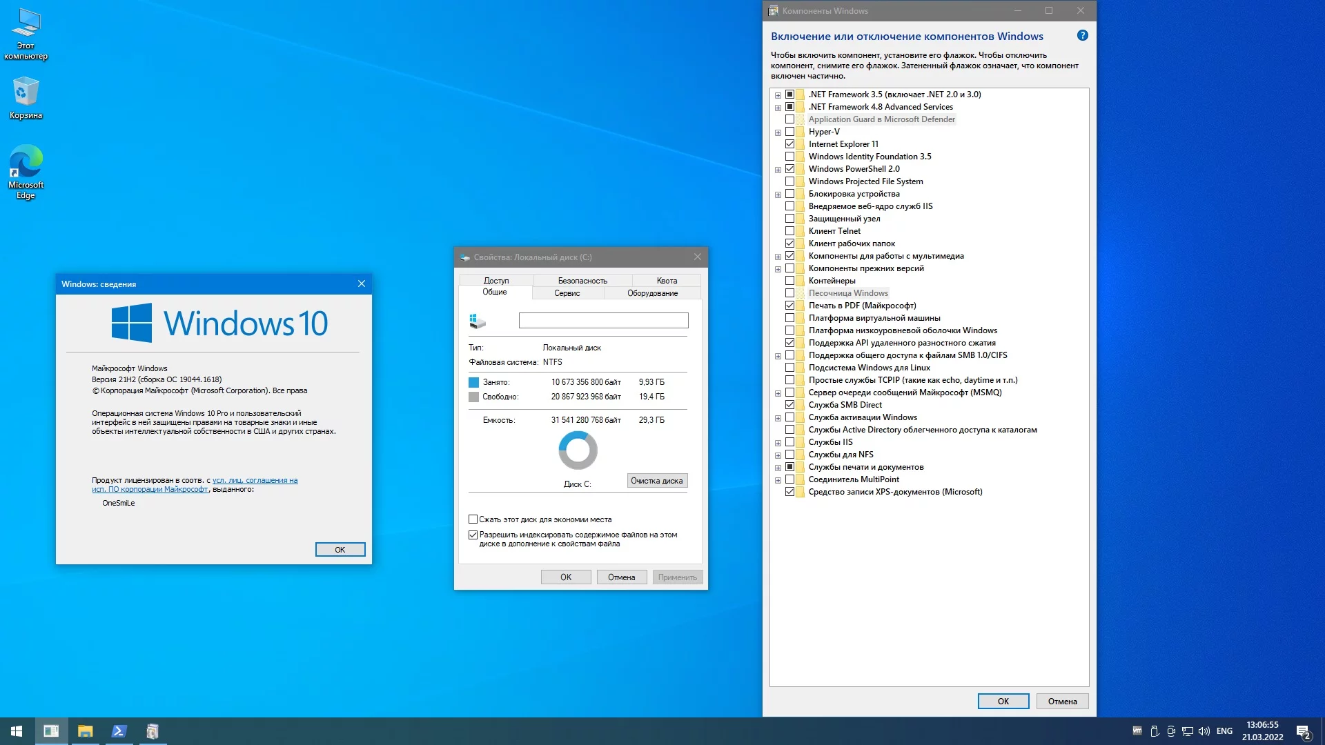 Windows 10 21H2 x64 Rus by OneSmiLe [19044.1618] — это обновленный образ системы Windows 10, который включает только Edge браузер без других модерн приложений, сохранённый из оригинального DVD-диска с актуальной сборкой.