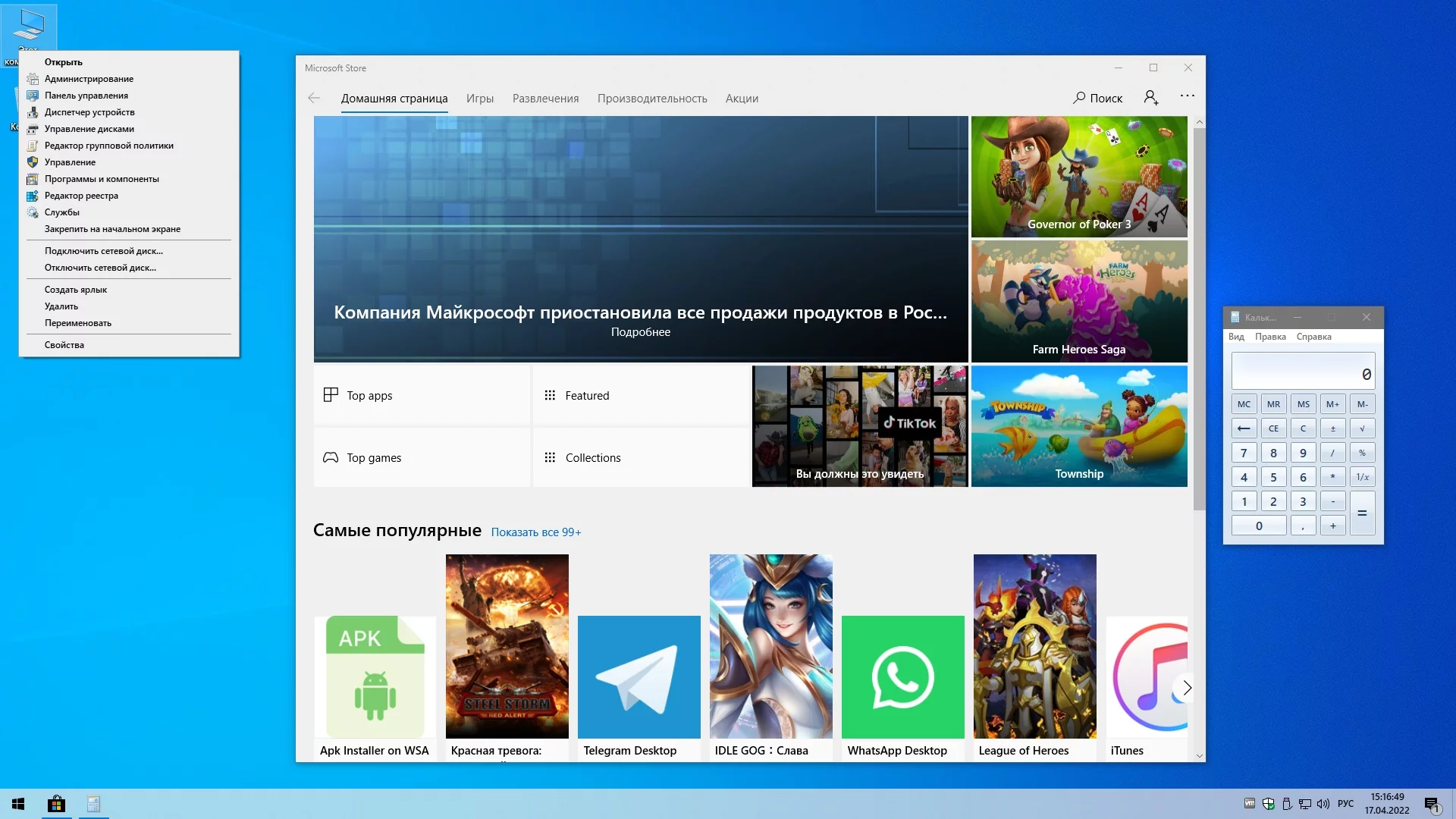 Изменили: Компьютер работает (значок скрыт), телеметрия отключена, размытие на экране блокировки вкл/выкл, учетные записи и взаимодействие с другими процессами, добавлены пункты контекстного меню.