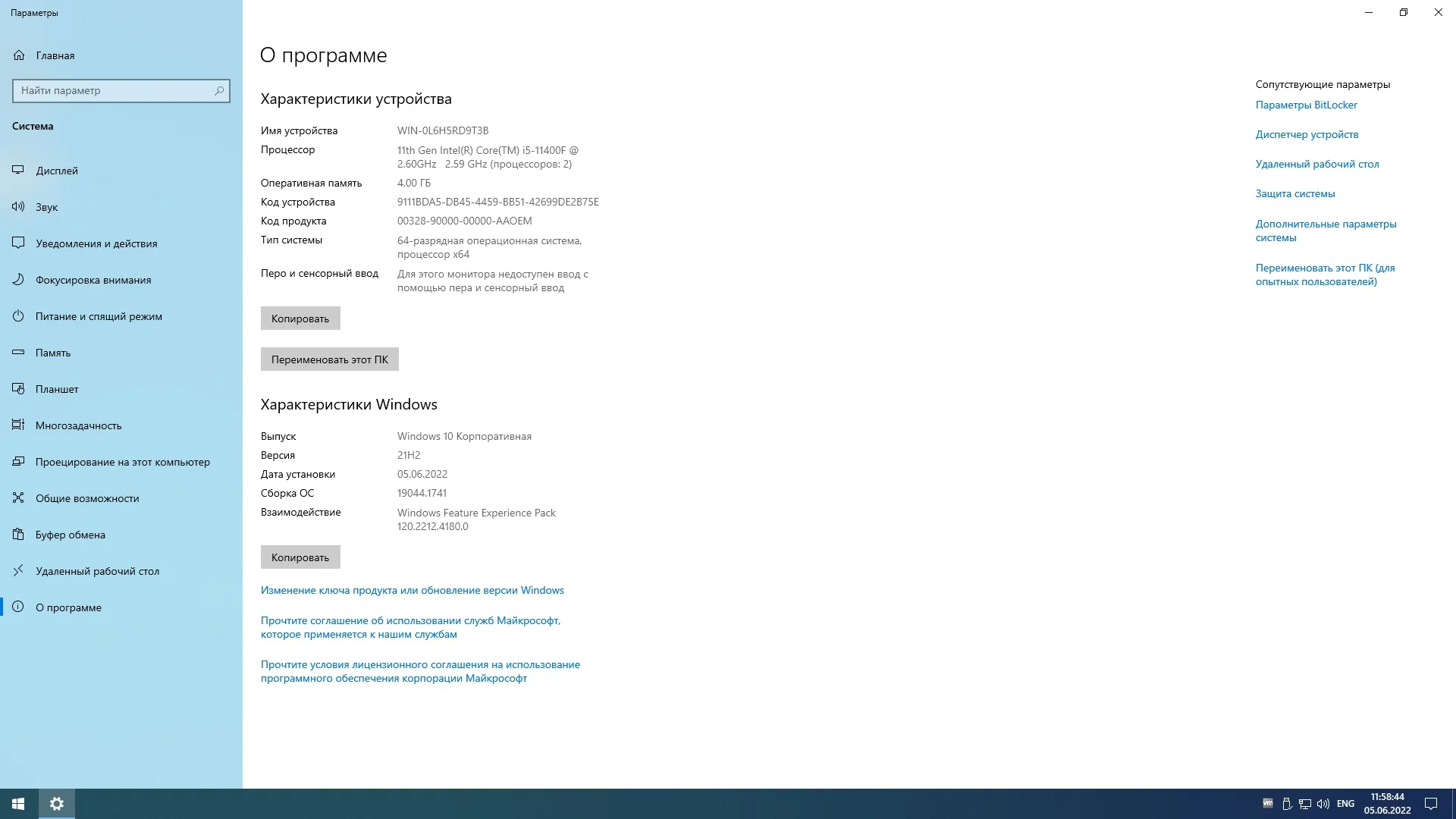 Windows 10 21H2 x64 Rus, Version 21H2 build 19044.1741