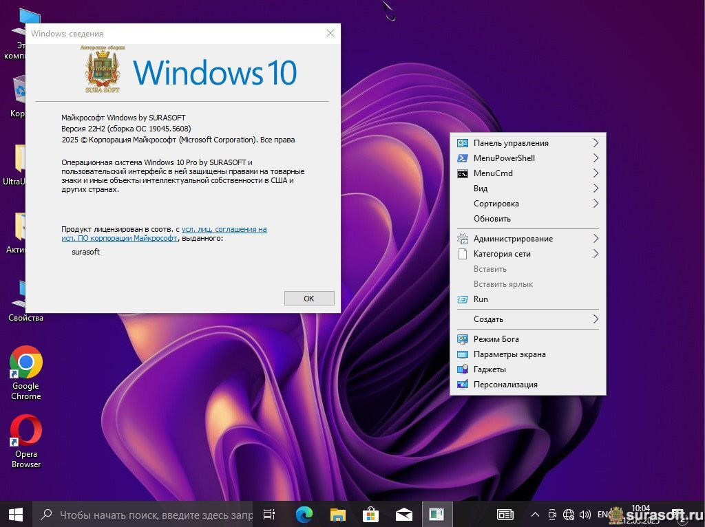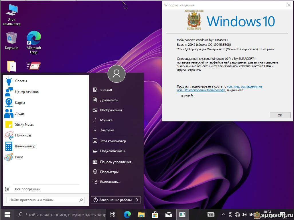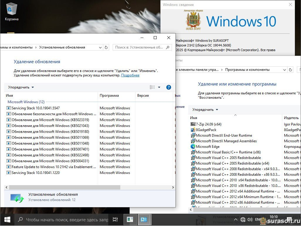 Windows 10 22H2 Build 19044_19045.5608, созданный компанией Surasoft, не содержит контрольных сумм или упоминаний о это WinRAR, Opera, Yandex, StartBack, .NET Framework 4.8.1, .NET Framework 3.5 (включая 2.0 и 3.0), Visual C++ 2005-2022, а также DirectX