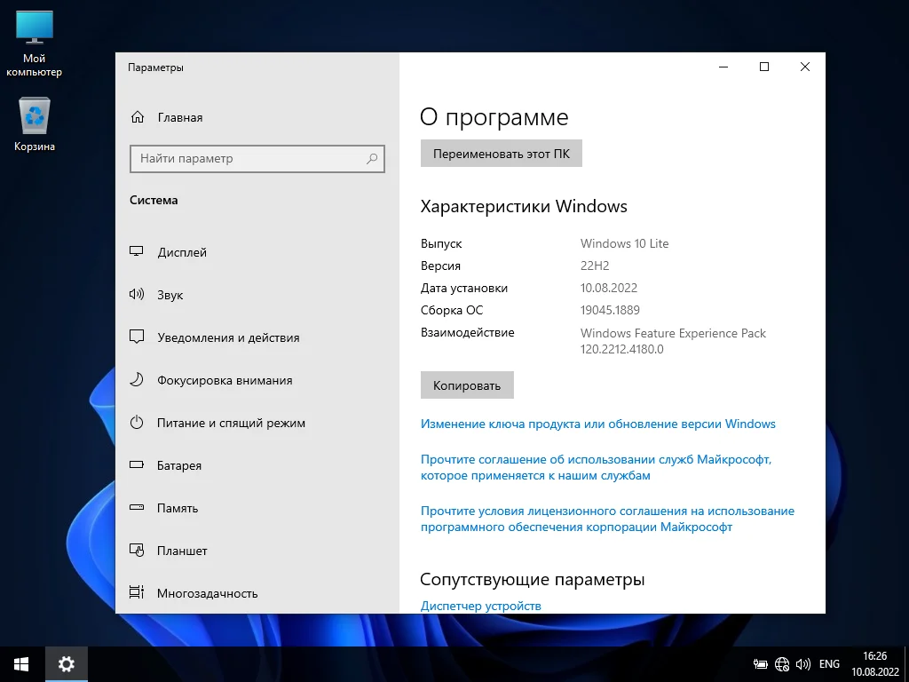 Windows 10 22H2 Lite by Den (x64-19045.1889)
