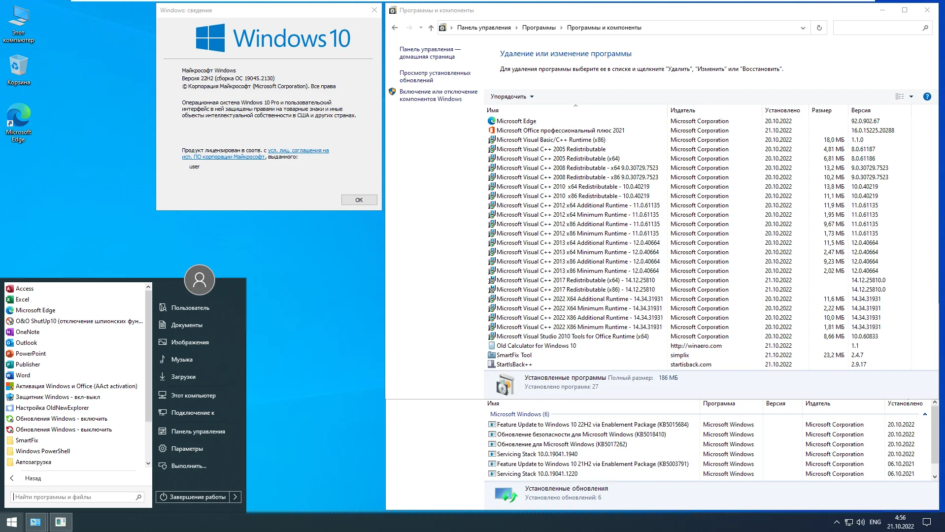 Windows 10 22H2 + LTSC 21H2 (x64) с обновлениями по 10.2022 и расширениями MS DART, Office 2021: