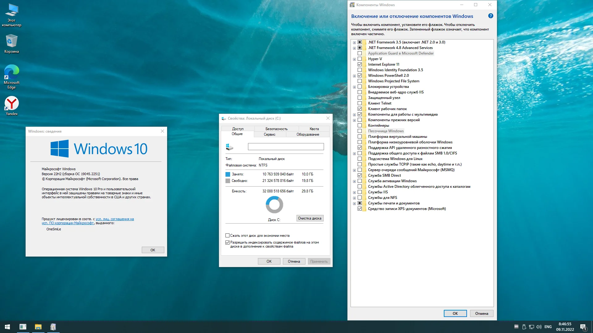 Версия 22H2 build 19045.2251 Сборка сделана из оригинального образа ru-ru_windows_10_business_editions_version_22h2_x64_dvd_61849fe8 Удалены все модерн приложения.
