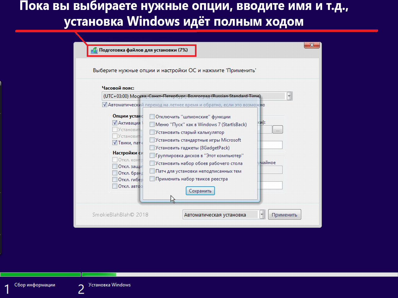 Скриншоты процесса установки русской версии: