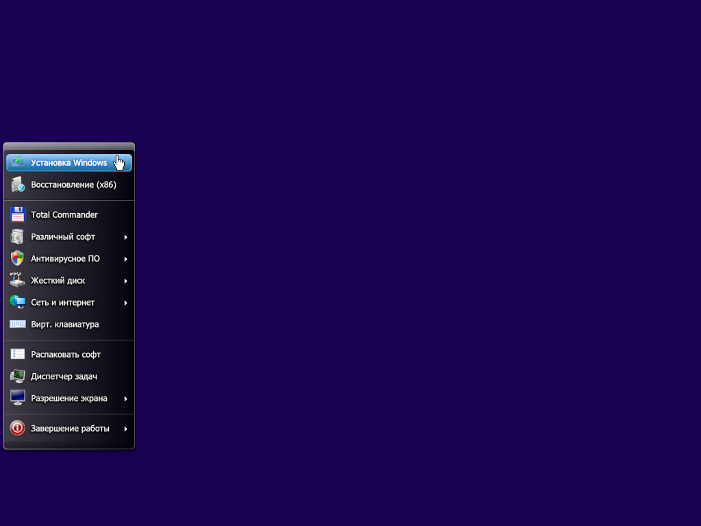 В 32-битный установщик (boot.wim) интегрирован софт (см. 3-й скриншот).