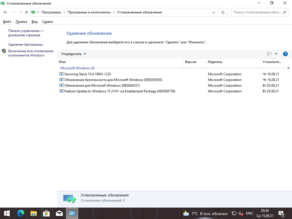 ·Обновления ОС по сентябрь 2021