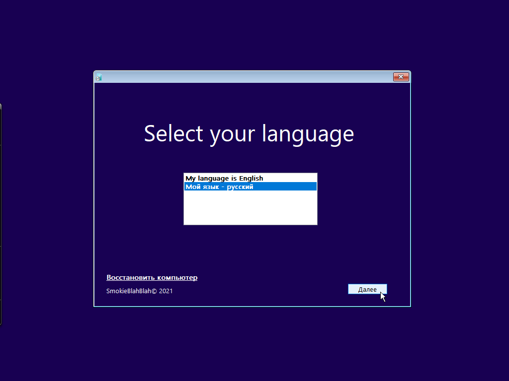 Скриншоты процесса установки русской версии: