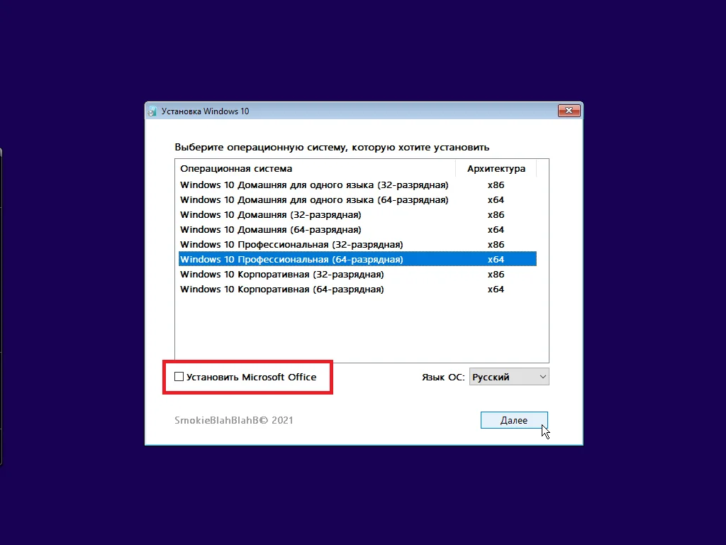 Windows x86/x64 имеет встроенный MS Office 2019 x86 при установке.