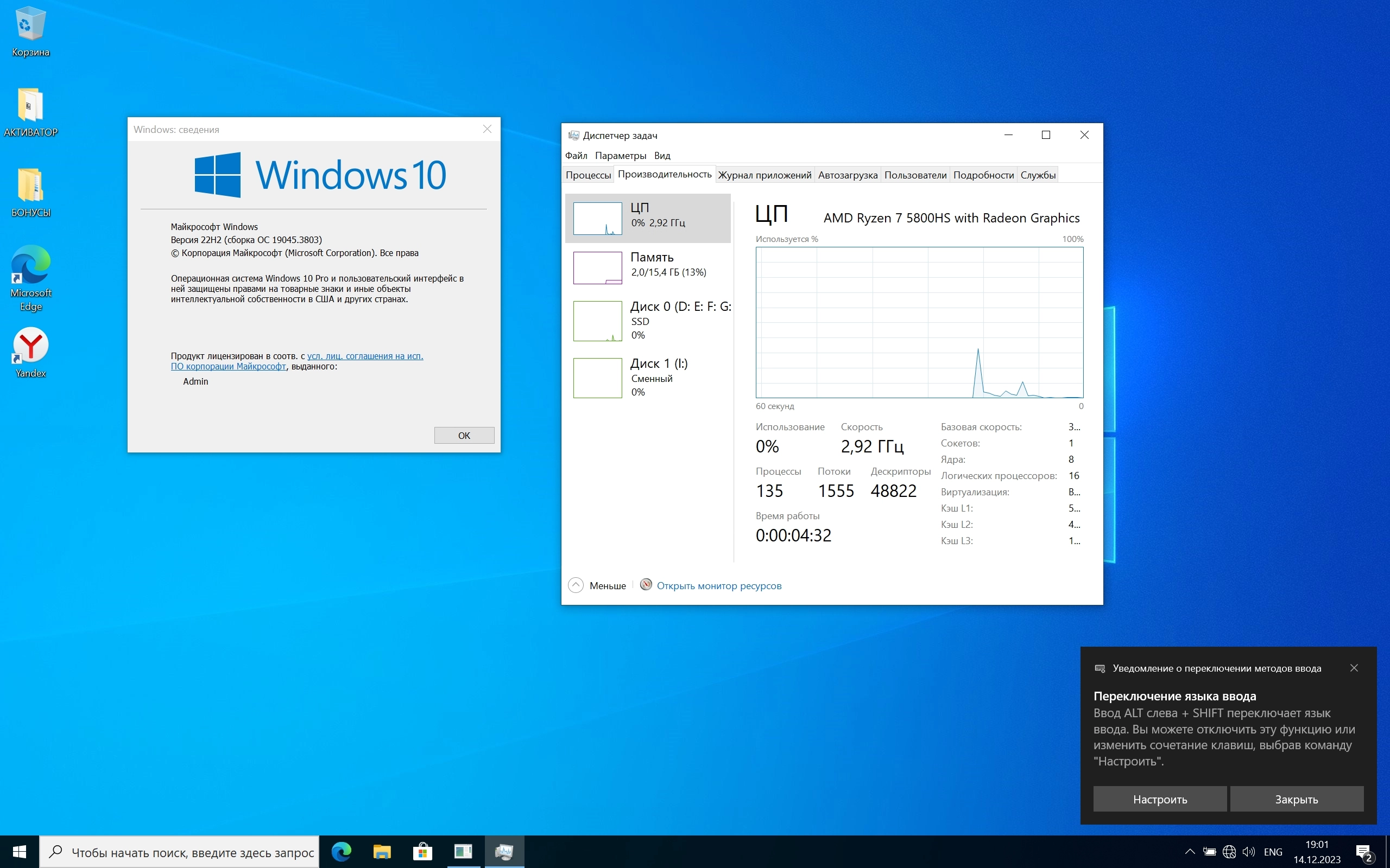 Windows 10 Без приложений 22H2 19045.3803 32in1 x64 торрент, изменения: