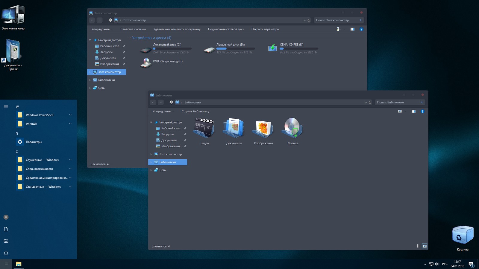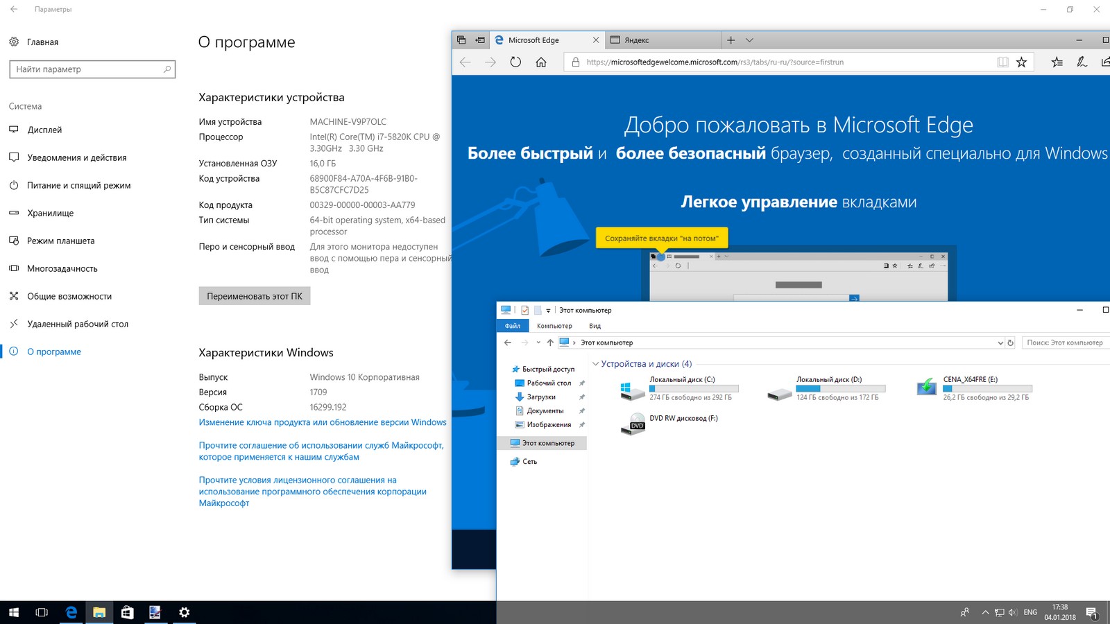Windows 10 Ent. RS3 x64 RUS G.M.A. QUADRO v.04.01.18 торрент, изменения: