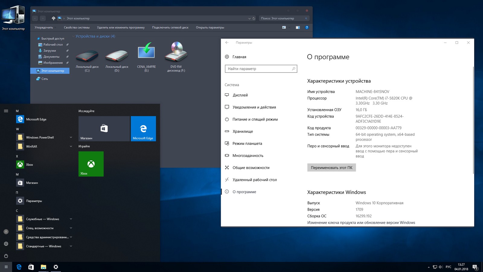 Windows 10 Ent. RS3 x64 RUS G.M.A. v.04.01.18 - с оригинальным оформлением [Версия - Store] с магазином , эджем и xbox.