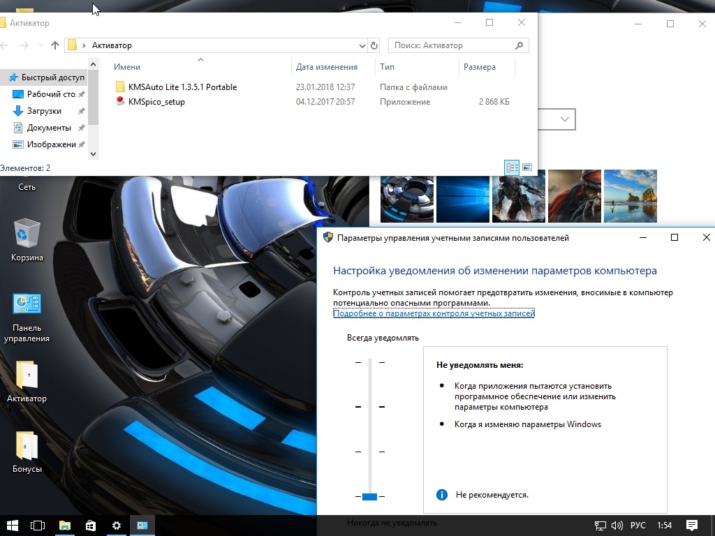 Так же активатор присутствует на рабочем столе в папке Активатор