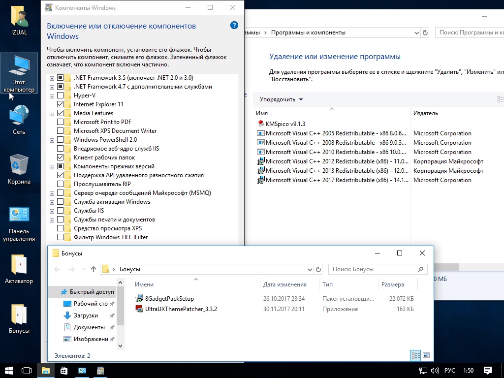 Windows 10 Enterprise 1709 build 16299.201 by IZUAL v.23.01.18 х32 торрент, изменения: