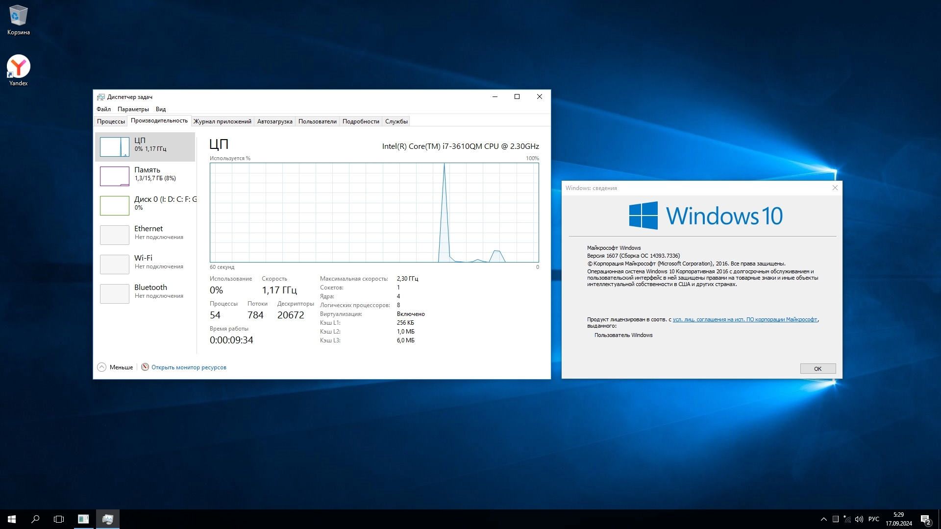 Windows 10 Enterprise 2016 LTSB Full с сентября 2024 года оптимальное решение для компьютеров с устаревшим или слабым железом. Это Windows образ, интегрирующий обновления до Сентябрь 2024 года и дополнительные системные библиотеки. Системные требования: